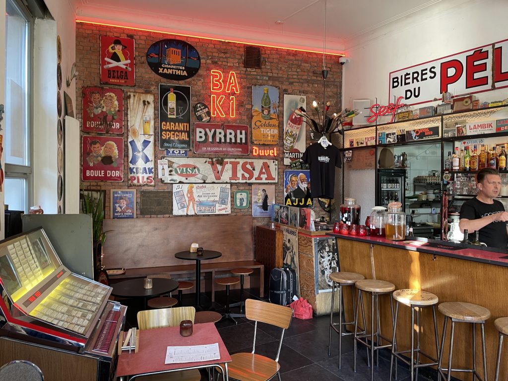 Teruglopend doen we twee typische buurtcafé’s in Borgerhout aan: Bar Leon en het eerder genoemde Bar Bakeliet. Je zult er niet van je stoel vallen van het bieraanbod, maar wat doe je op dit soort plekken: een bier bestellen (respectievelijk Jack’s IPA en Excelsior pils) en een beetje om je heen kijken naar wat er zoal gebeurt in de microkosmos die een kroeg is. Bij Bar Leon spreken mensen met kinderen af om een pintje te drinken; handig, want het terras en speeltuin zijn een ware symbiose aangegaan op dit autoluwe plekje.